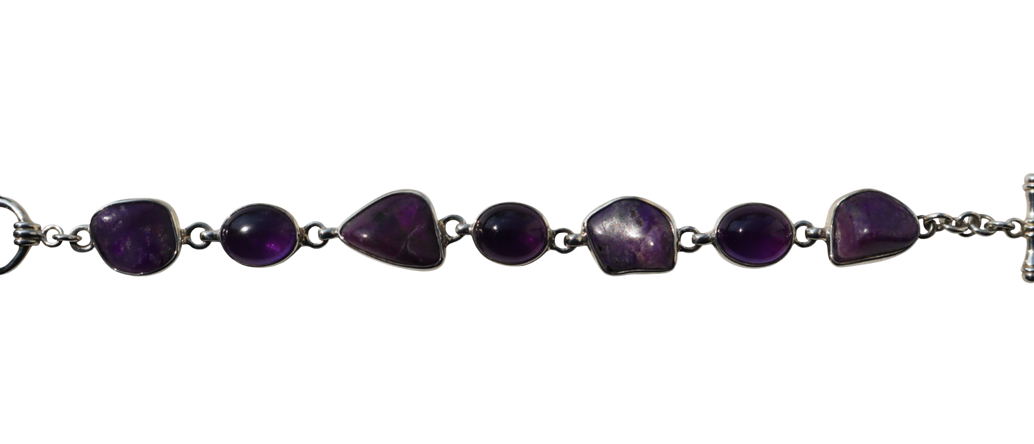7″ Amethyst and Sugilite bracelet set in sterling silver with 1″ extender.