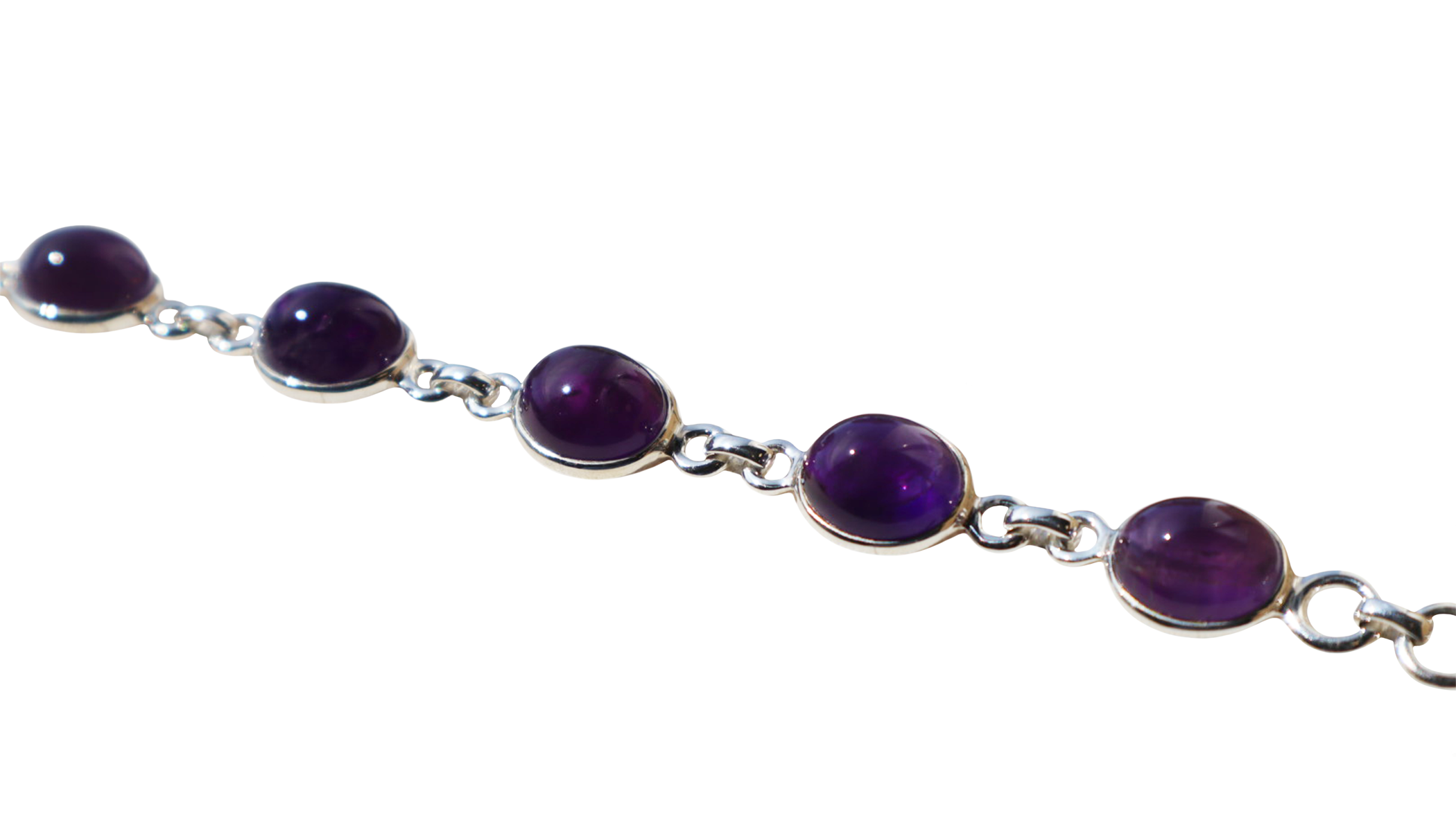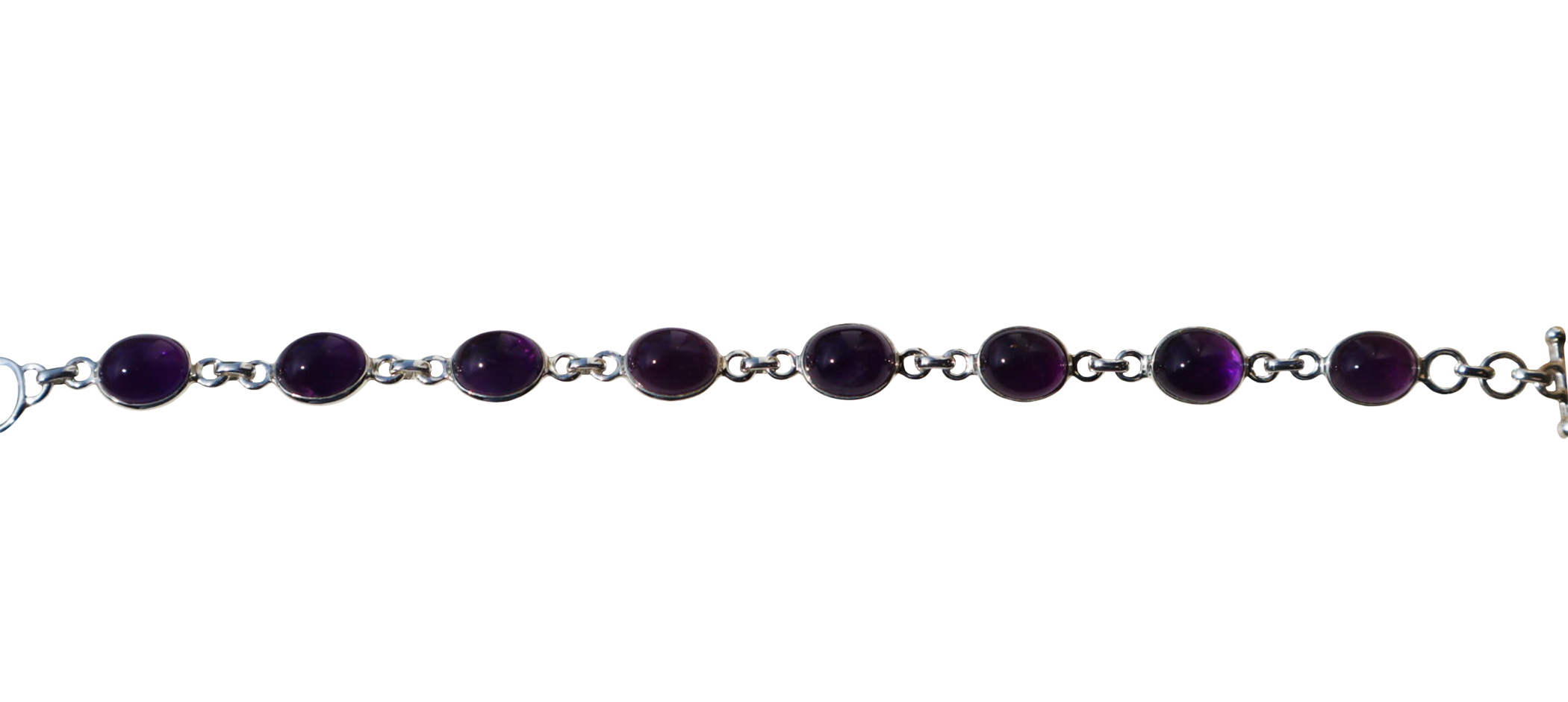 6″ Oval cabochon Amethyst bracelet set in sterling silver.