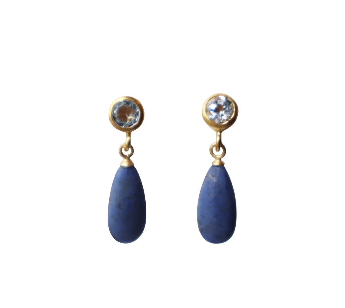 Matte Dumortierite and Blue Topaz earrings set in 24k gold vermeil.
