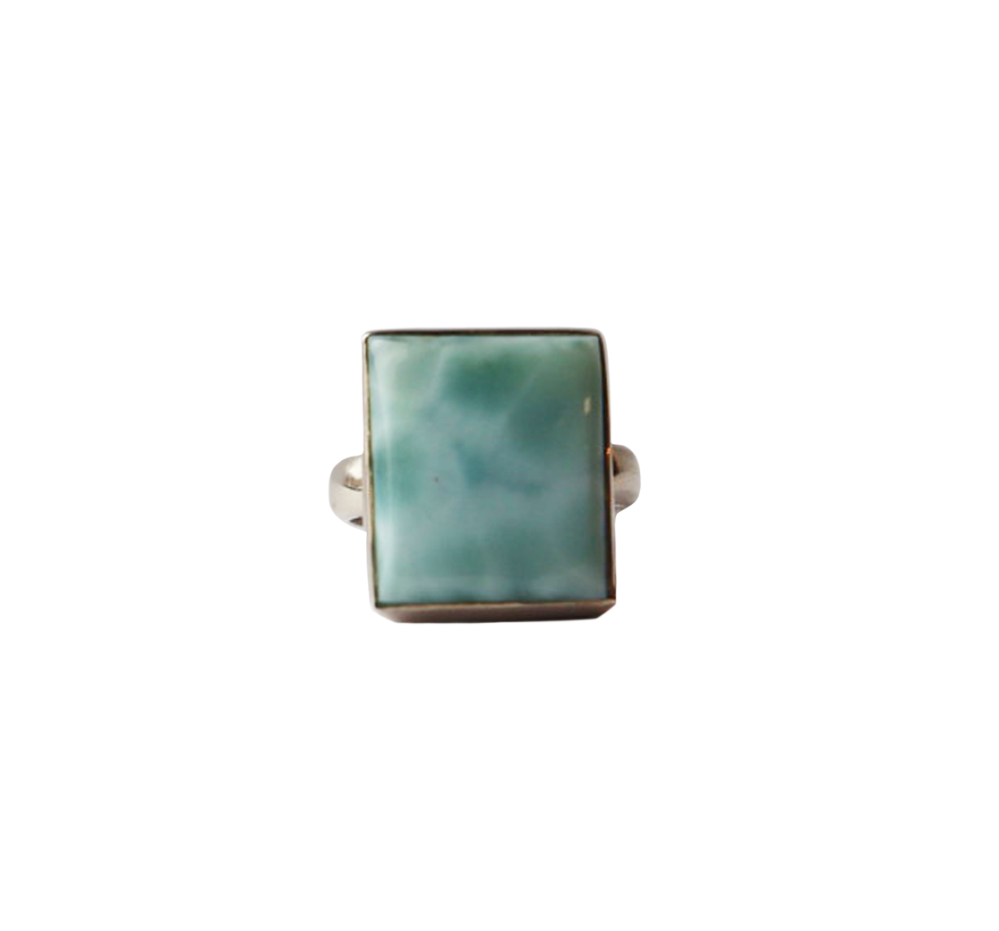 A: Square Larimar ring measures 15mm x 17mm, size 7 1/2