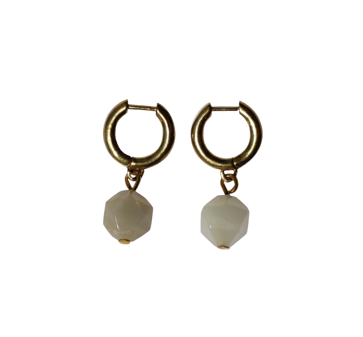 Santore Jewelry is hand made to order in Los Angelos, CA by Katrin Santore and her team. Materials used are plated Brass and genuine gemstones. Jewelry metals are lead, nickel and cadmium free. Ear wires are made of jeweler’s brass, studs have steel wire and silver tone is plated steel. Colored metals are plated and colors are permanently bonded to the metal.