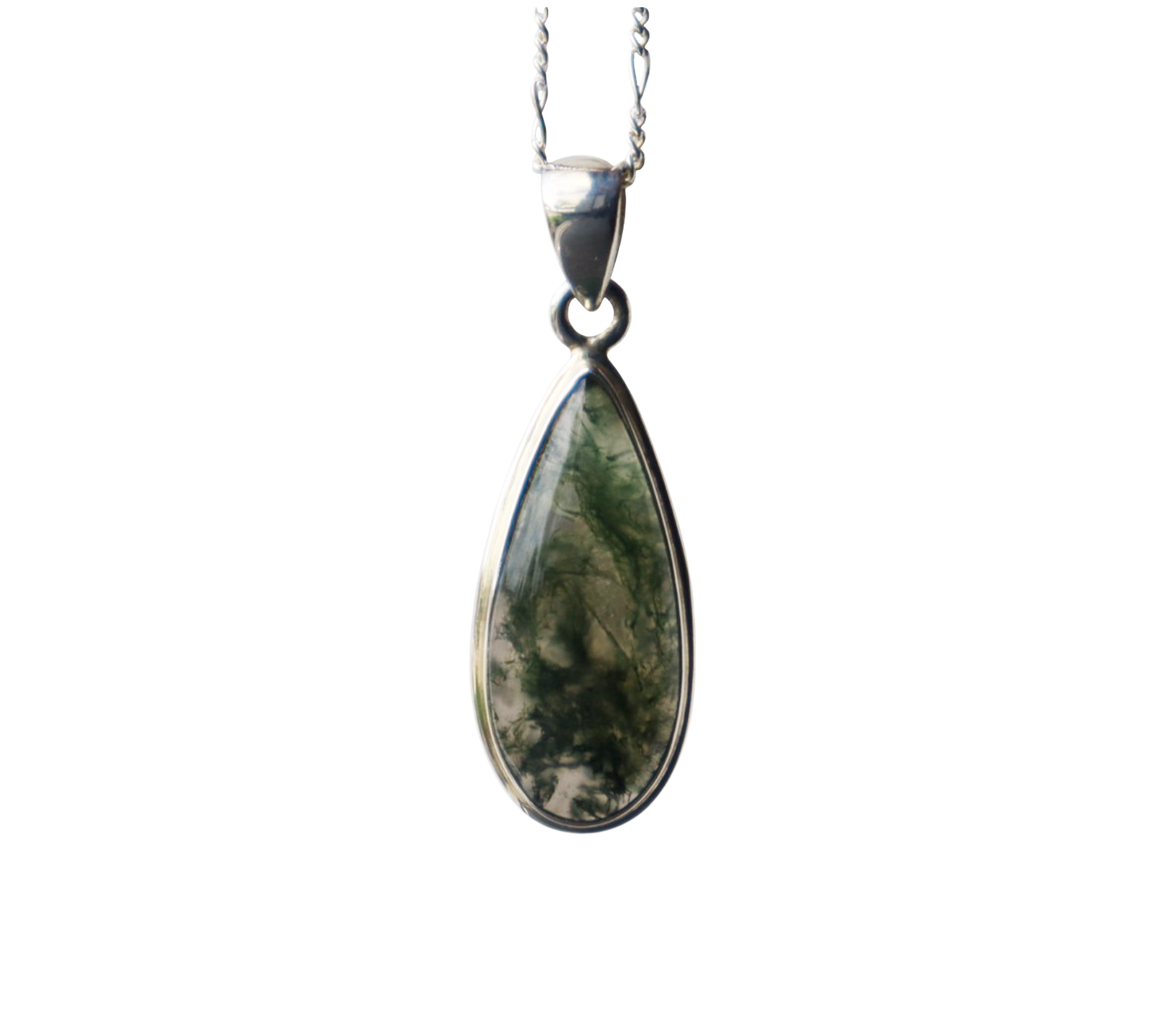 Moss Agate pendant set in sterling silver, chain sold separately.
