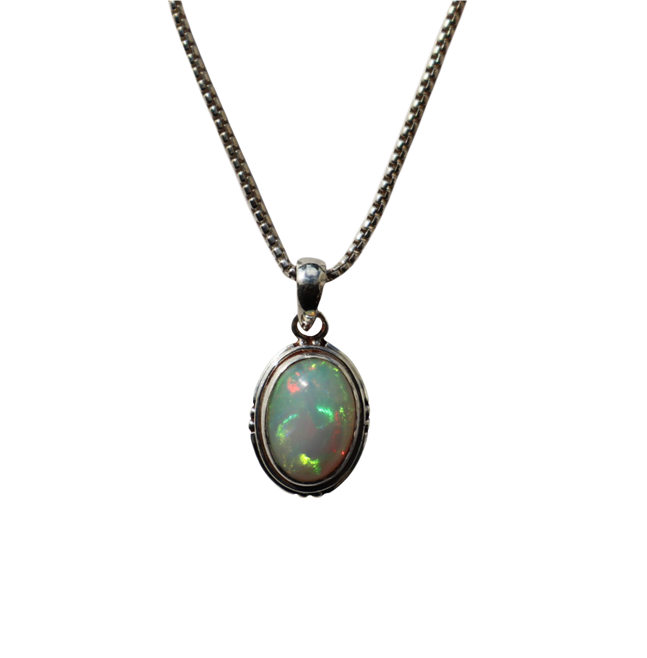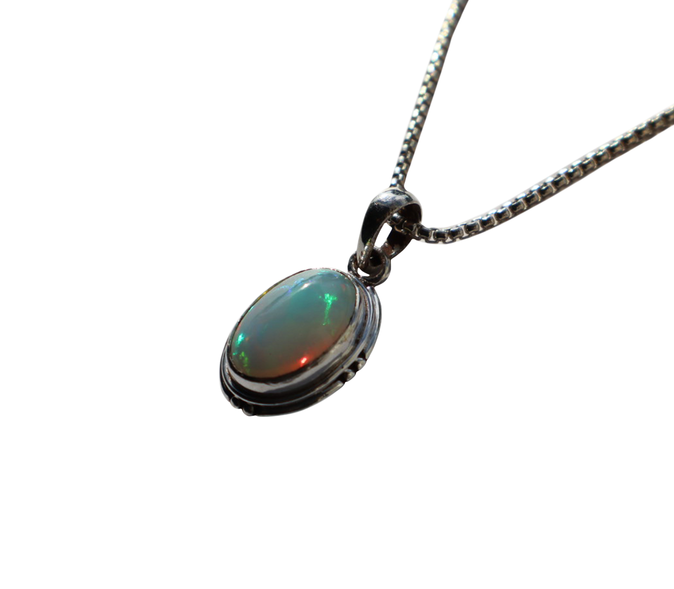 Opal cabochon pendant set in sterling silver.