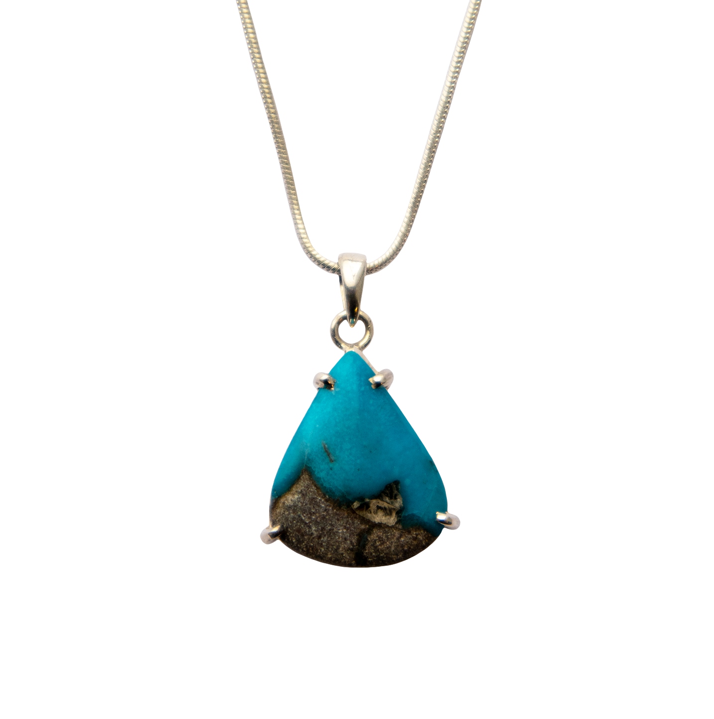 24mm x 20mm Persian Turquoise pendant set in sterling silver. Chain sold separately.