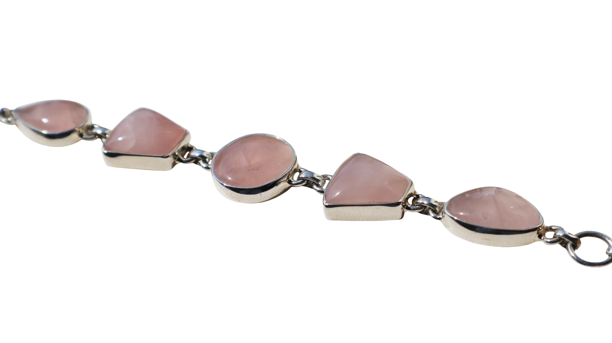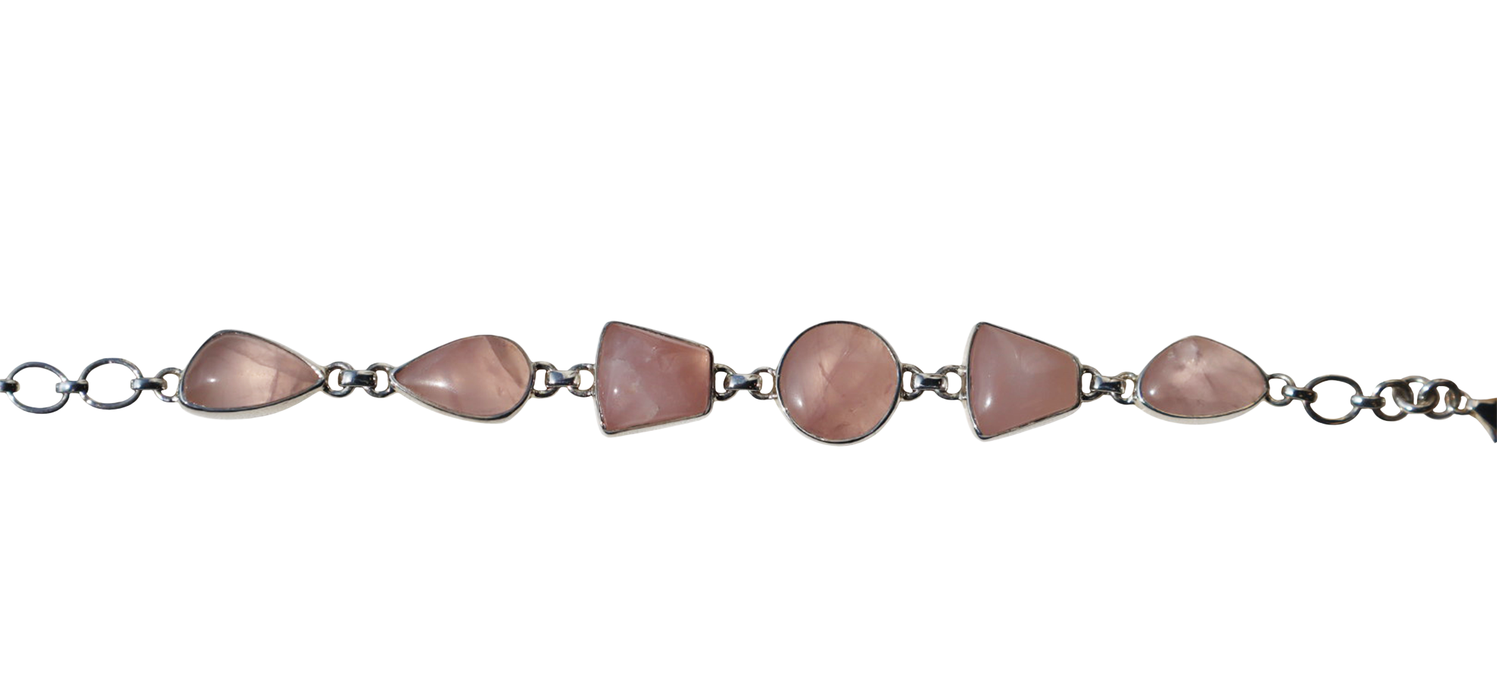 5″ Rose Quartz bracelet set in sterling silver with a 1″ extender.